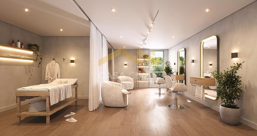 Como diferenciais, os apartamentos receberão isolamento acústico no contrapiso, paredes duplas com isolamento acústico nas divisas das unidades, vidro duplo nas janelas, esquadrias linha gold, infraestrutura de aquecimento de água a gás, tomadas USB nos quartos e salas e etc.