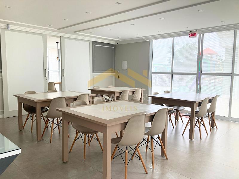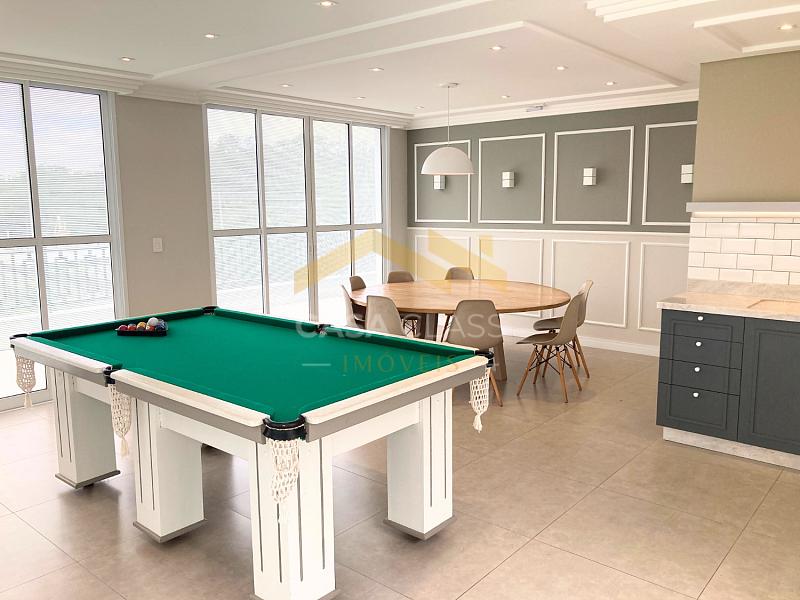 Destaque para as áreas de lazer com salão de festas mobiliado e equipado, academia equipada, piscina, sala de jogos e playground.