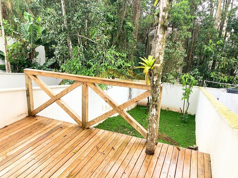 Destaque para os fundos do terreno, com deck de madeira que pode ser transformado numa deliciosa área gourmet e ainda um amplo espaço com grama rodeado de muito verde.
