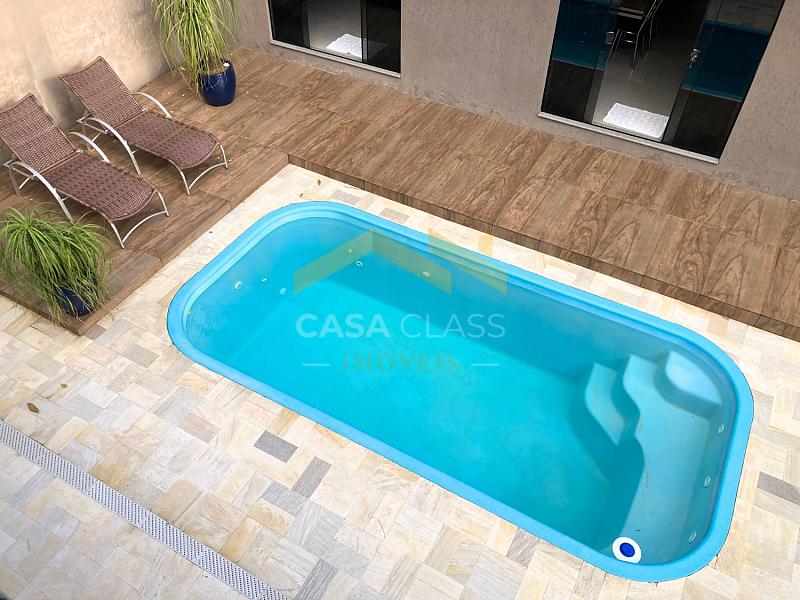 Aos fundos, uma bela piscina e ampla área gourmet com 65 m² perfeita para passar os bons momentos.