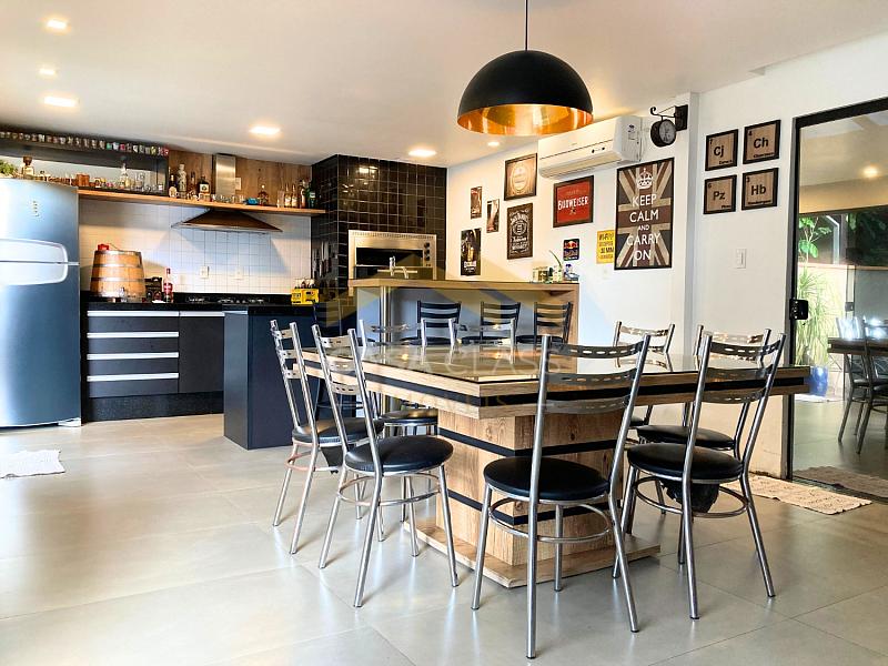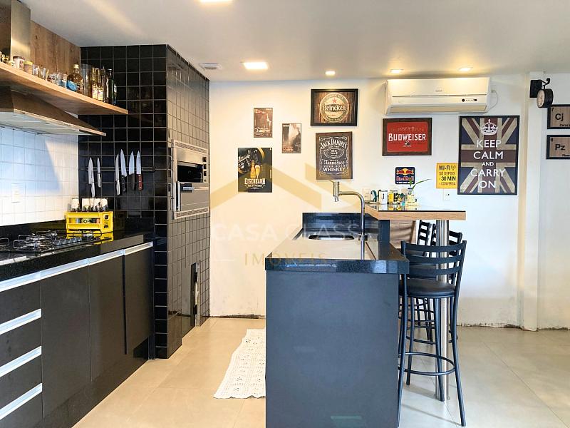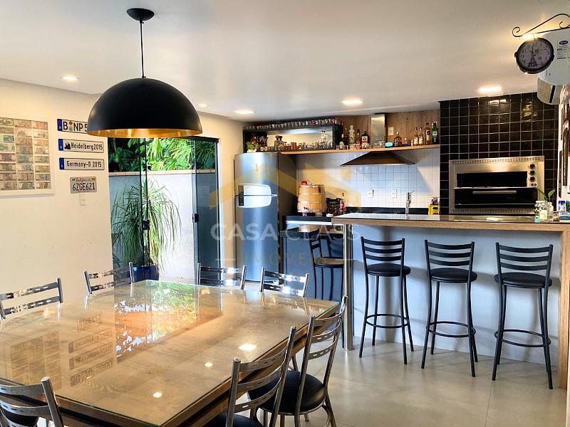 A casa possui 260 m² contendo duas salas, ampla cozinha, home office, barzinho, 01 suíte com sacada, 02 quartos, lavabo, banheiro social e lavanderia.